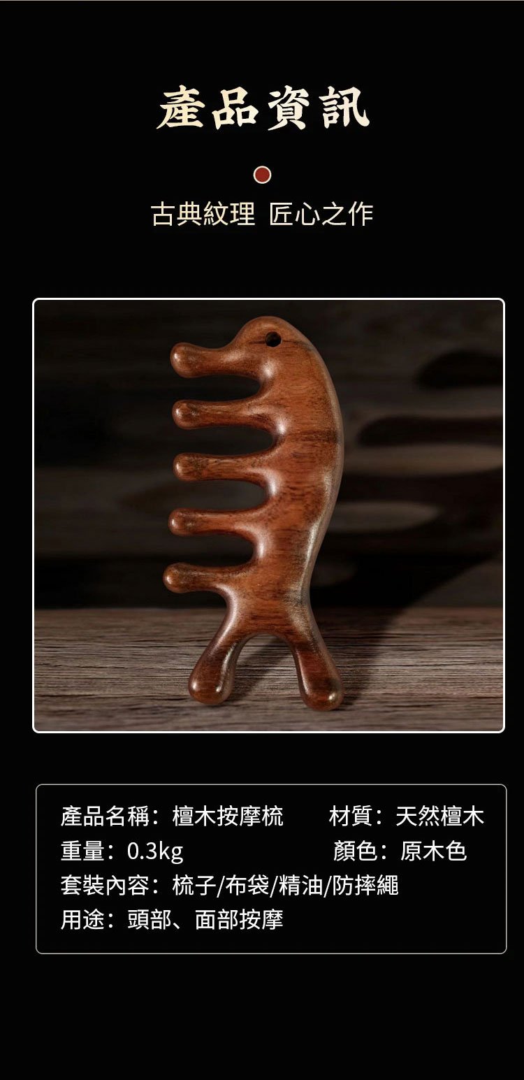 7分鐘前天然檀木美容經絡按摩梳 ◀頭臉按摩◀疏通經絡◀刮痧排毒 按摩穴位促進排毒,面部提拉緊緻 - 【疏通經絡,刮痧排毒】3入組HK$296